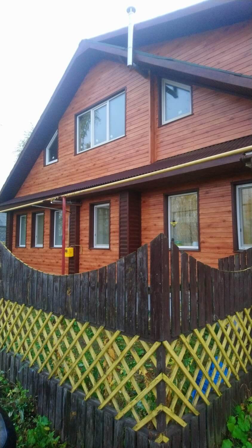 Дом, обшитый профнастилом С-8 в оттенке под дерево