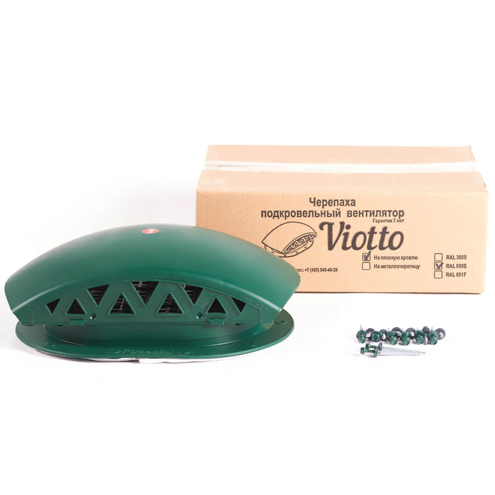 Подкровельный вентилятор "Черепаха" Viotto RAL 6005 Зеленый Мох для готовой мягкой и фальцевой кровли в Чите