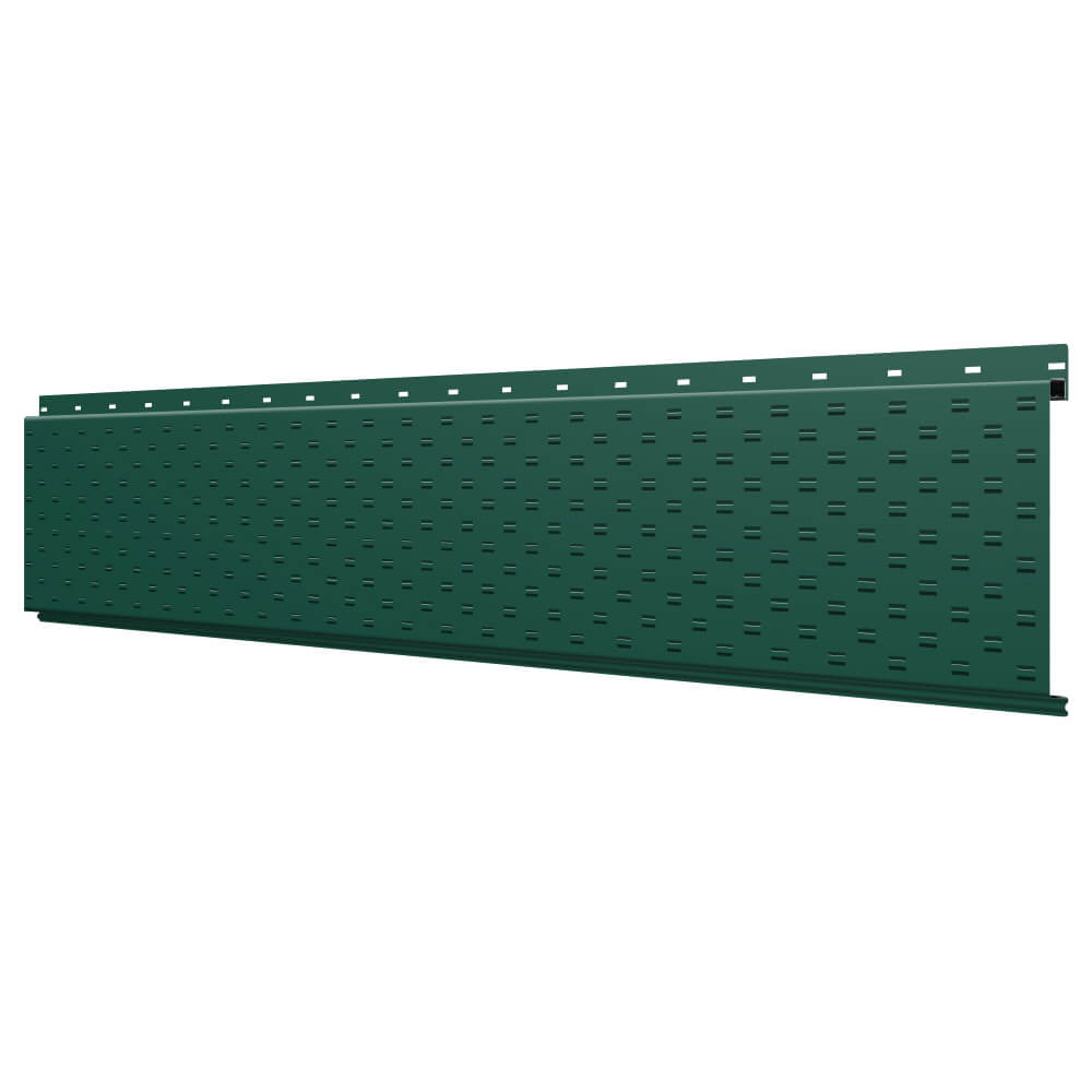 Линеарная потолочно-стеновая панель с ПЕРФОРАЦИЕЙ для вентиляции цвет RAL6005 Зеленый Мох применяется в качестве софитов для подшивы крыши, наружной и внутренней отделки потолков, стен, фронтонов фасада дома в Чите.