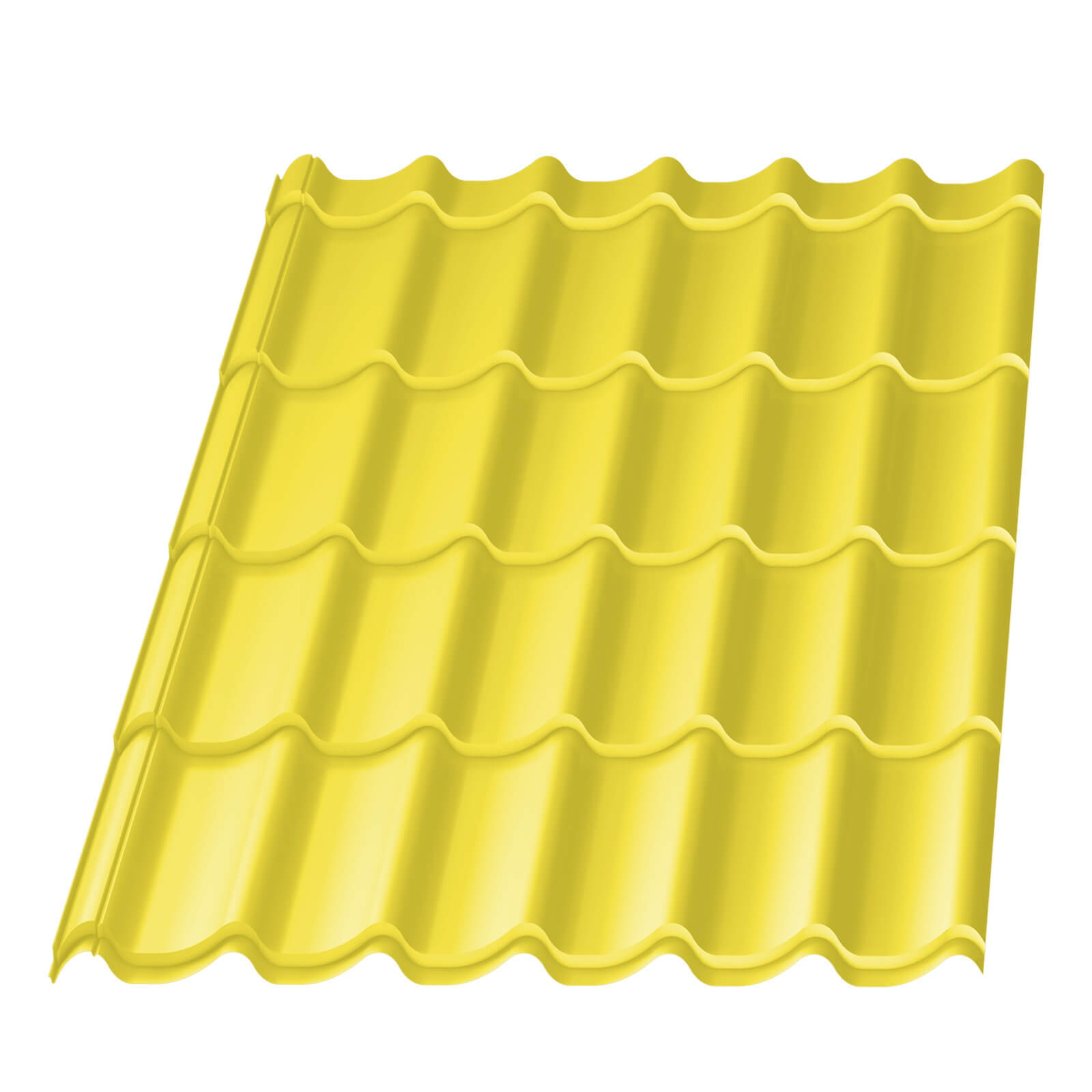 Металлическая черепица Меркурий RAL 1018 Желтый имеет профиль внешне на кровле напоминающий классическую керамическую черепицу. Меркурий — это обновленный аналог профиля металлической черепицы для кровли крыши. Форма профиля имеет богатый внешний вид напоминающий небольшие набегающие волны. Лучшие показатели герметизации сделали профиль Меркурий гарантом стабильной и долговременной службы на крышах в Чите. Данный профиль отличается не только своим качеством, но и благородным внешним видом.