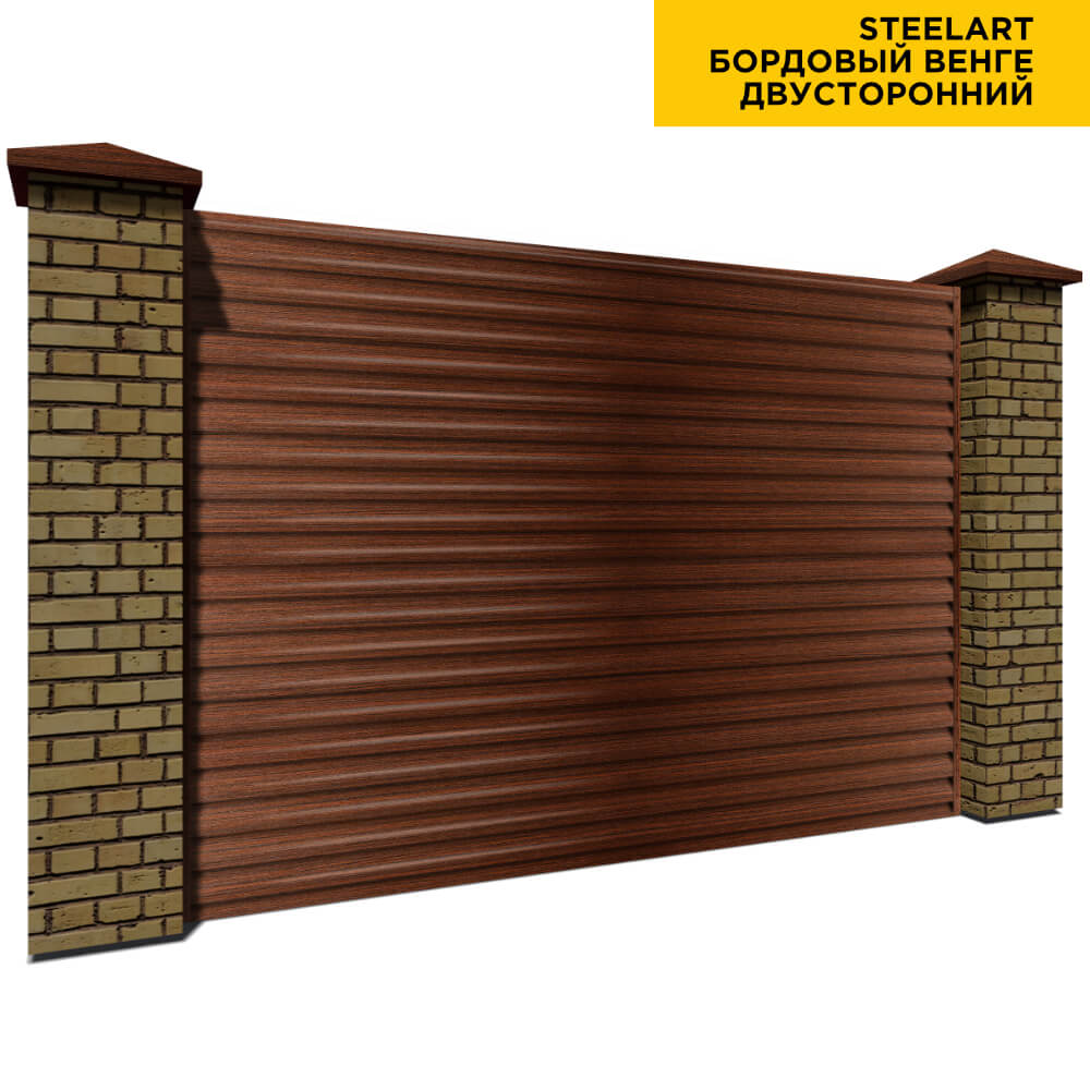 Ламель Еврожалюзи металлическая S-образная, цвет под дерево Бордовый Венге SteelArt Россия двухстороннее покрытие, длина любая кратно 1см под заказ - для забора-жалюзи, беседки, перголы в Чите.