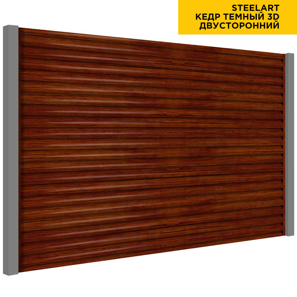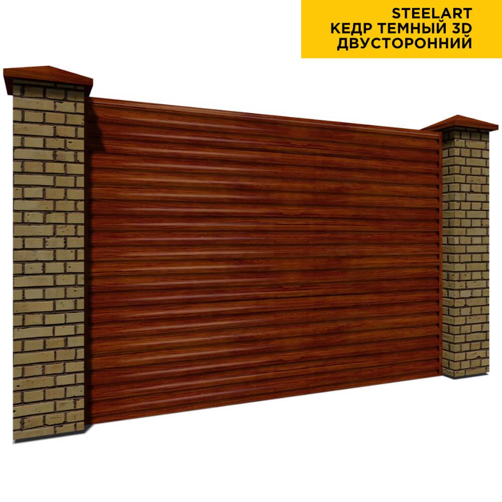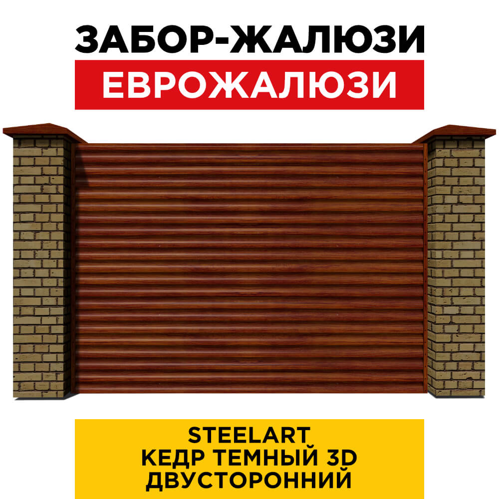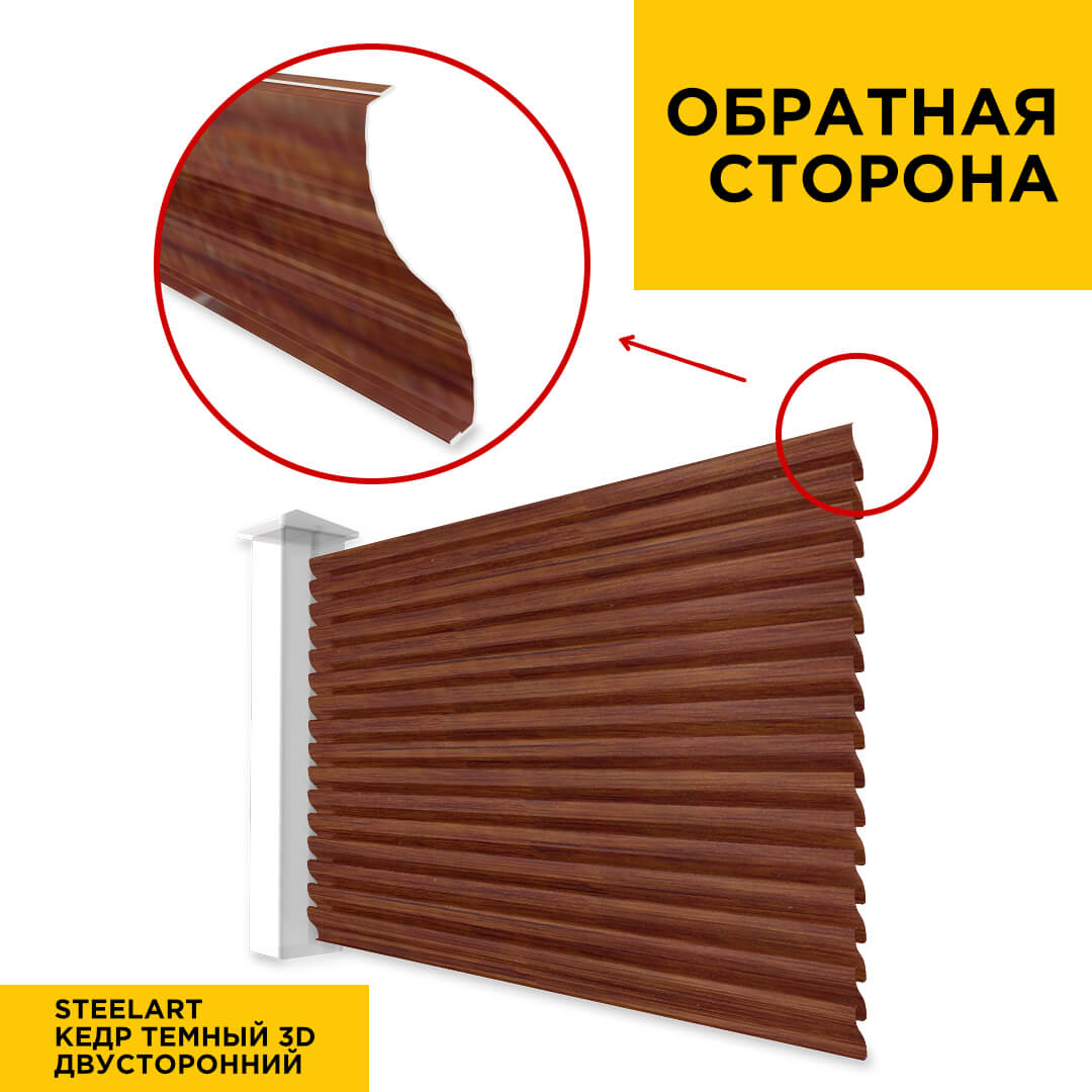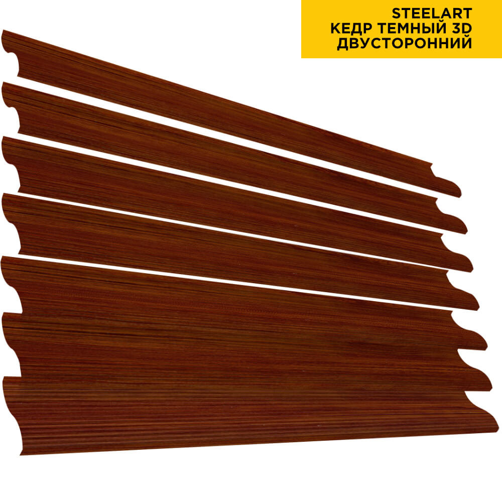 Ламель Еврожалюзи металлическая S-образная, цвет под дерево Кедр Темный 3D SteelArt Россия двухстороннее покрытие, длина любая кратно 1см под заказ - для забора-жалюзи, беседки, перголы в Чите